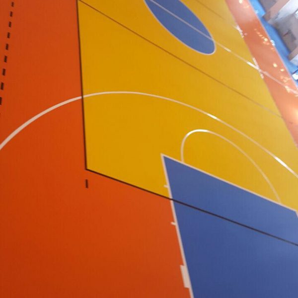 Son kat boya uygulamasının üzerine standartlara uygun olarak Poliüretan çizgi boyası ile saha (Salon Futbolu, Salon Hentbolu, Salon Hokeyi, Basketbol, Voleybol, Tenis) çizgileri oluşturulur. Uygulamanın yapışması çok iyi maskeleme bantları kullanılır, boya kurumadan bantlar sökülür.